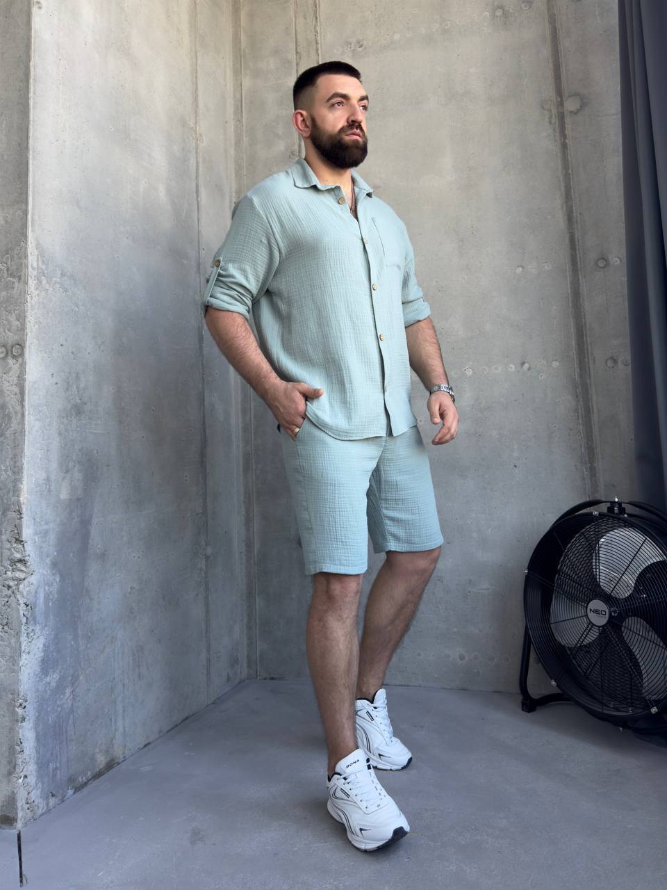 Будьте первым, кто оставил отзыв на “Летний мужской костюм: рубашка с регулируемыми рукавами+шорты с карманами оливка”