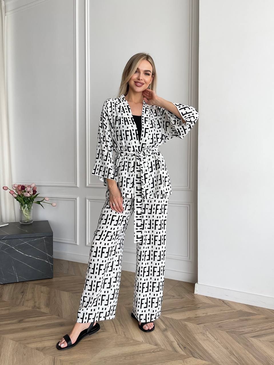 Летний женский костюм: рубашка-кимоно с поясом+свободные брюки белый