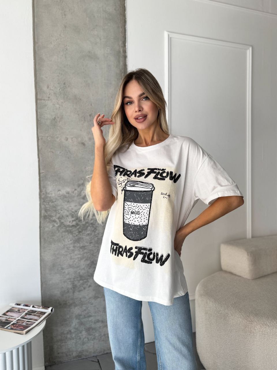 Летняя Футболка с накатом по полочке+спинке белый