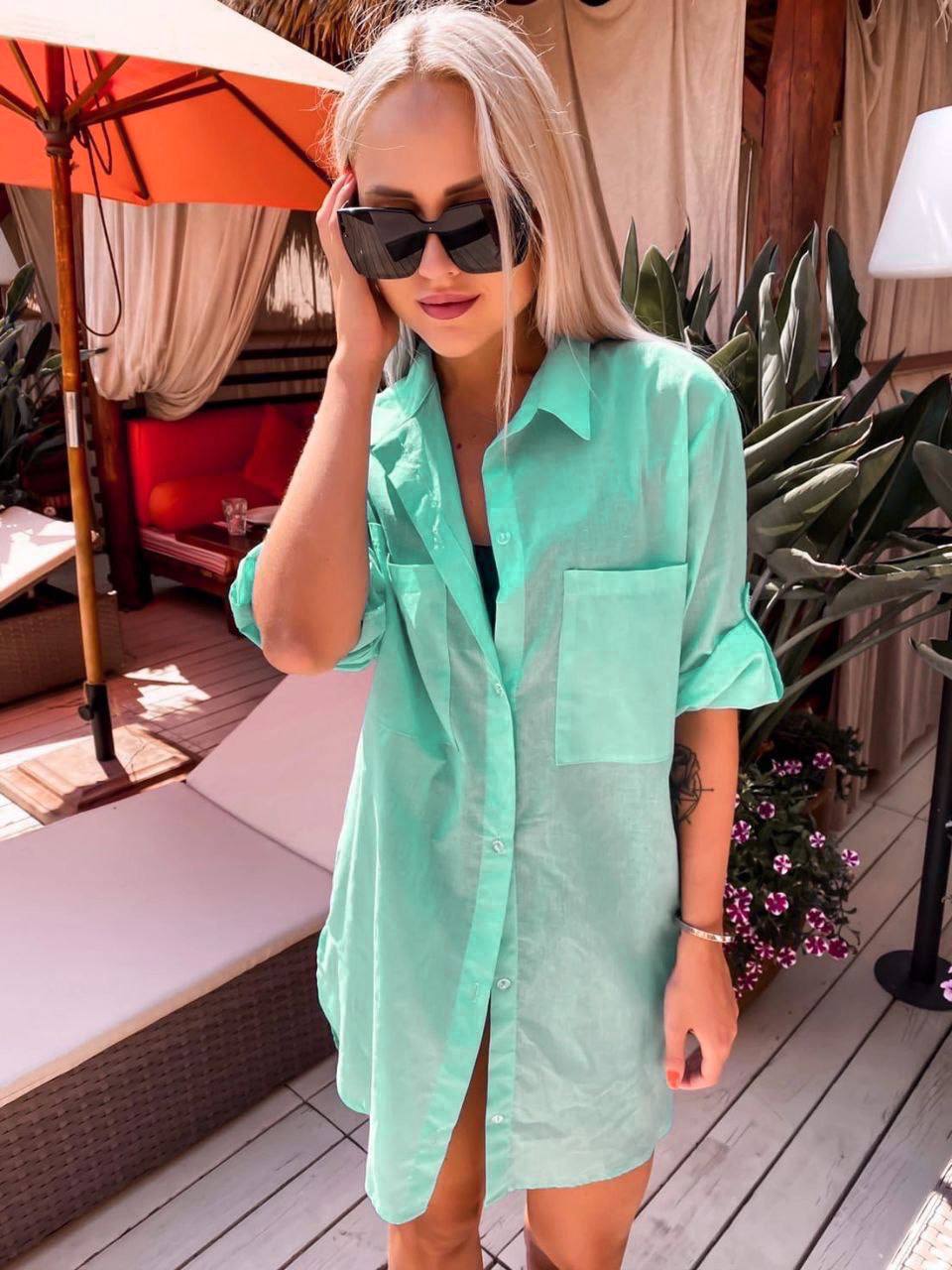 Летняя легкая рубашка на пуговицах, рукав на регулируемой подтяжке, по низу разрезы