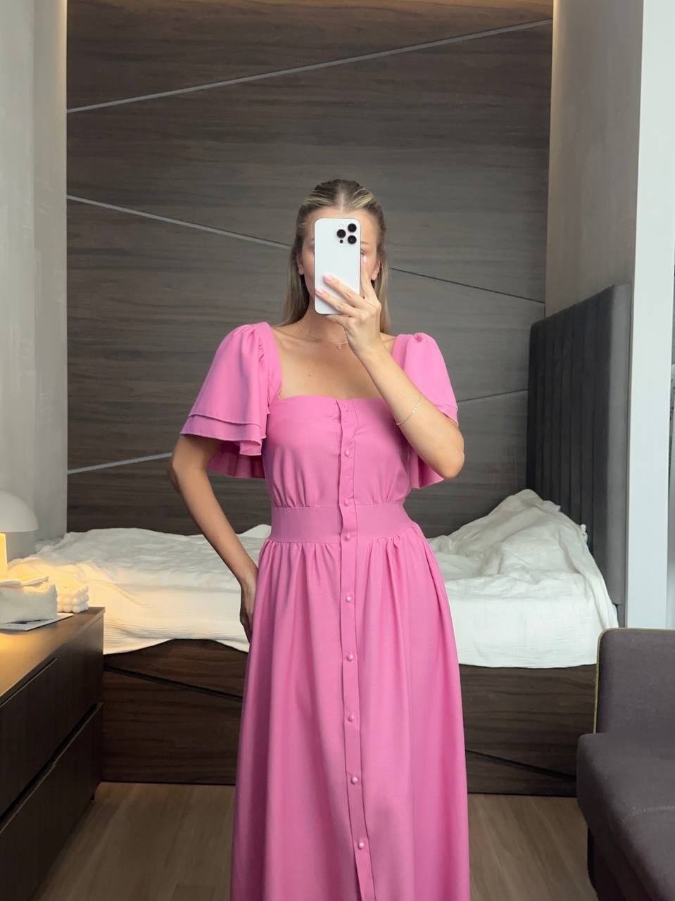Головна » Магазин » ОДЕЖДА » ПЛАТЬЯ ТУНИКИ САРАФАНЫ » Льняное Платье на пуговицах с пышными рукавами+акцентной талией розовый