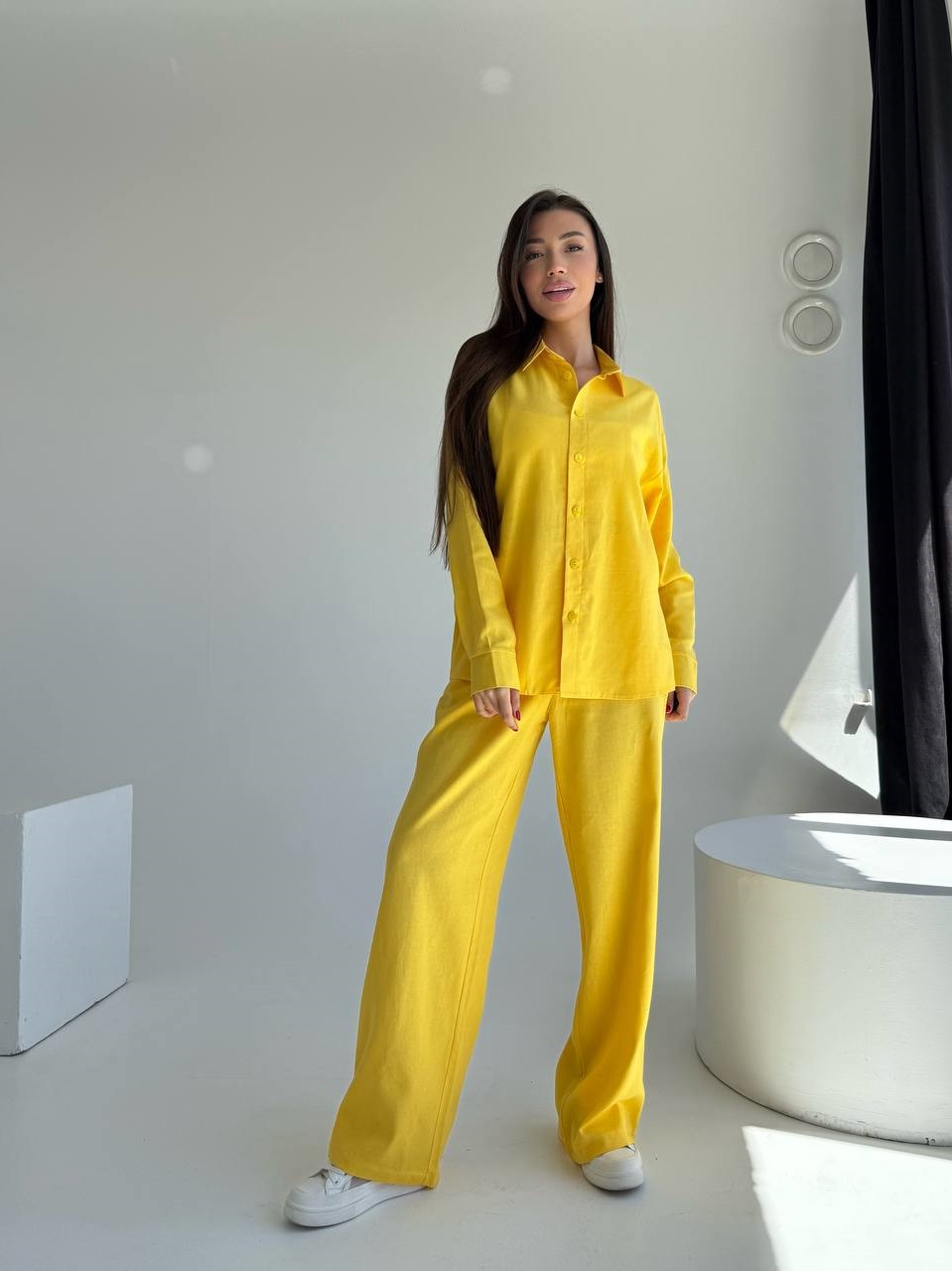 Головна » Магазин » ОДЕЖДА » ЖЕНСКИЕ КОСТЮМЫ » Льняной костюм (рубашка+брюки свободного кроя) желтый