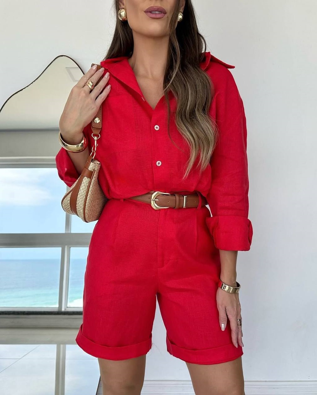 Свободная рубашка и шорты с высокой посадкой, позади резинки, создают безупречный силуэт, а яркий акцентный цвет придает уверенность.