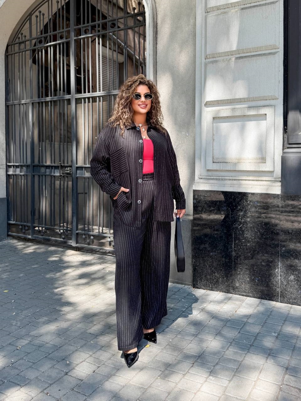 Головна » Магазин » ОДЕЖДА » ЖЕНСКИЕ КОСТЮМЫ » Льняной костюм свободного кроя принт полоска (брюки+рубашка) черный