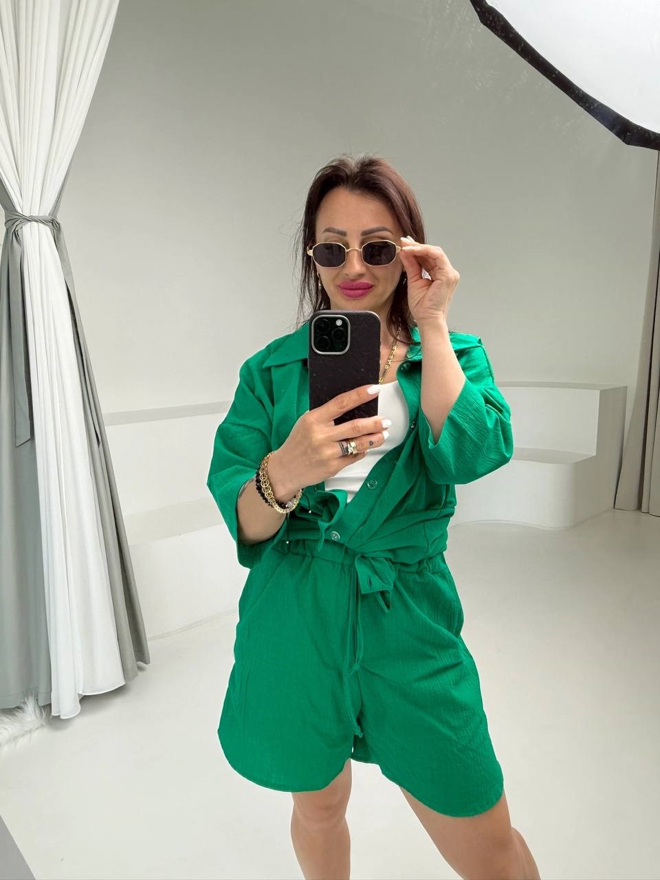 Головна » Магазин » ОДЕЖДА » ЖЕНСКИЕ КОСТЮМЫ » Льняной костюм (свободного кроя шорты+рубашка) зеленый