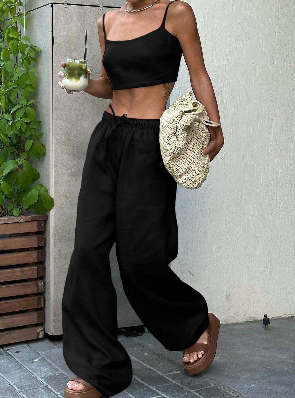 Головна » Магазин » ОДЕЖДА » ЖЕНСКИЕ КОСТЮМЫ » Льняной костюм топ-майка и свободные штаны черный
