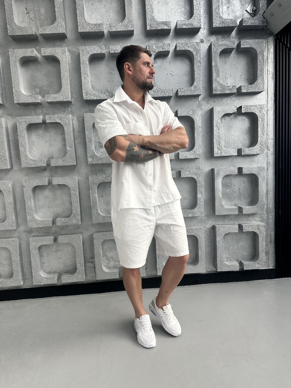 Головна » Магазин » ОДЕЖДА » МУЖСКИЕ КОСТЮМЫ » Льняной легкий костюм (рубашка с коротким рукавом+шорты) белый