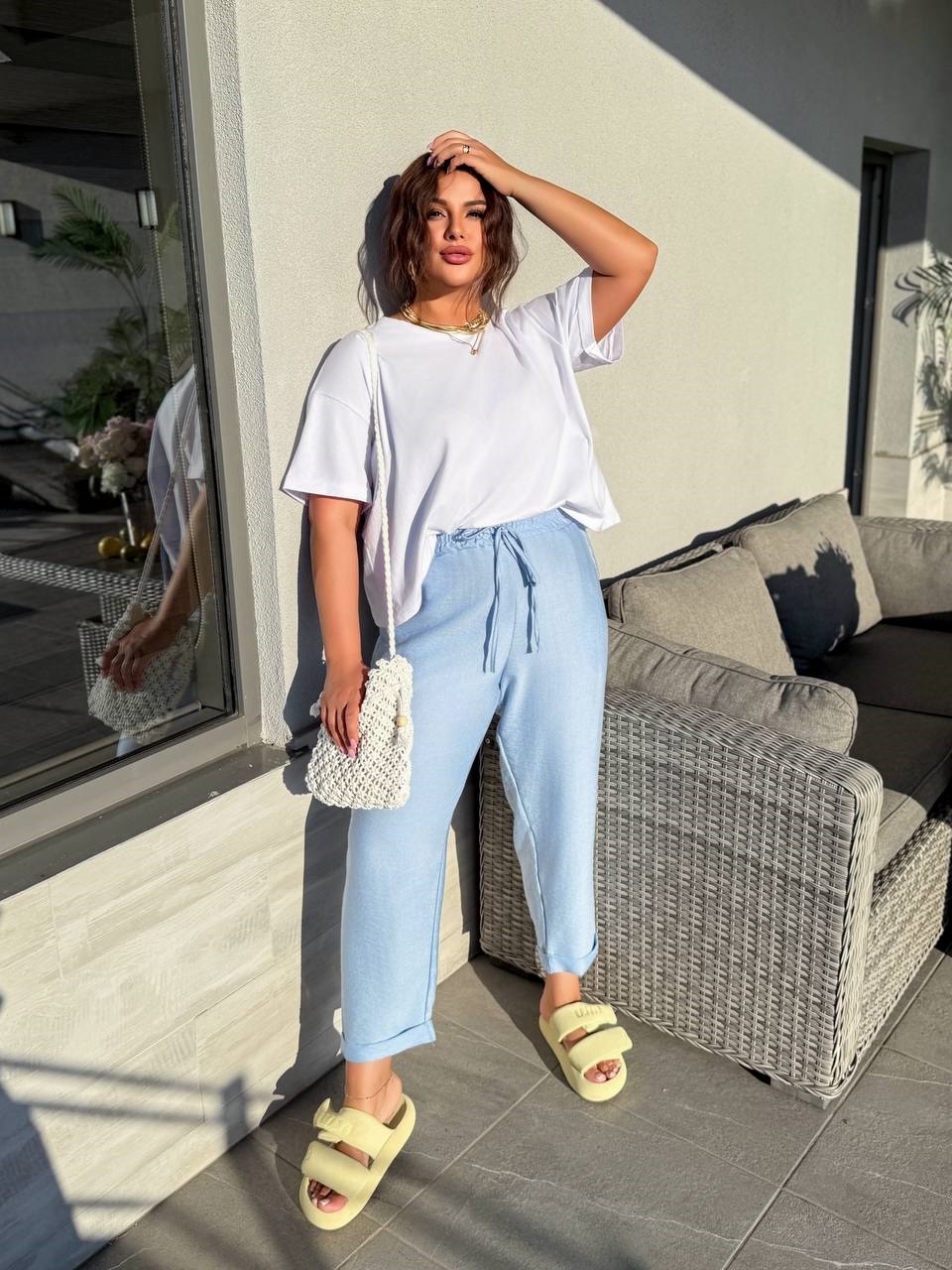 Будьте первым, кто оставил отзыв на “Льняные брюки-бананы с карманами талия на резинке голубой”