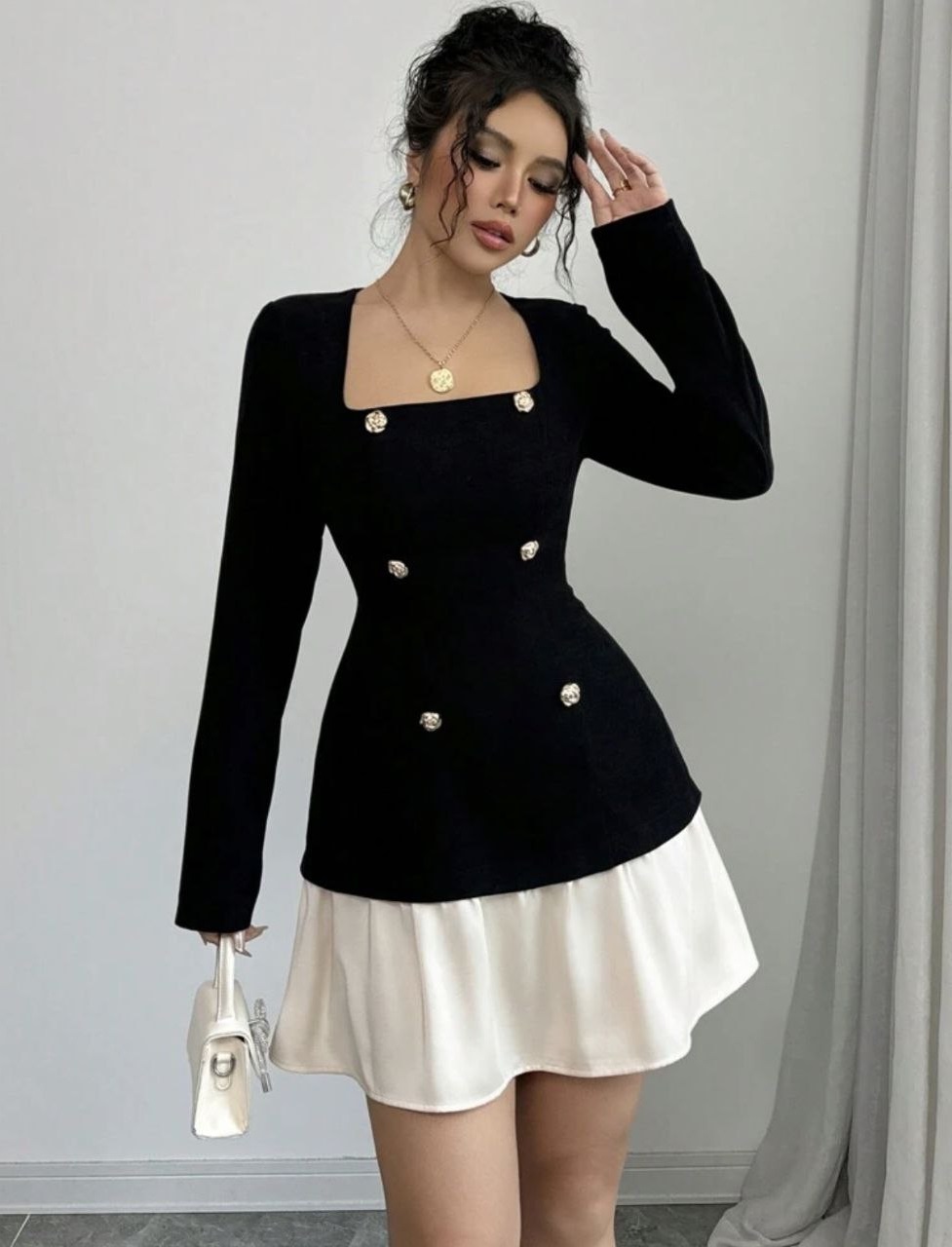Головна » Магазин » ОДЕЖДА » ПЛАТЬЯ ТУНИКИ САРАФАНЫ » Милое платье длиной мини с контрастной юбкой черно-белый
