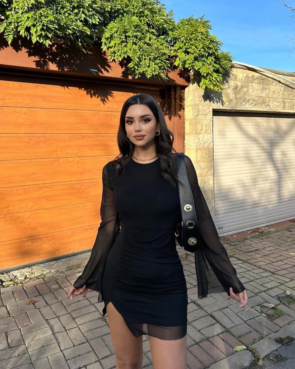 Головна » Магазин » ОДЕЖДА » ПЛАТЬЯ ТУНИКИ САРАФАНЫ » Мини платье с разрезом драппировкой по переду рукава сетка креп дайвинг черный