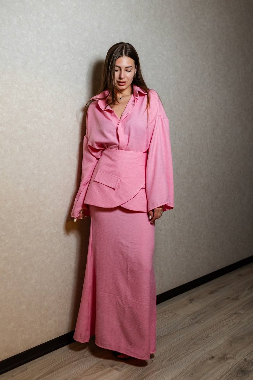 Головна » Магазин » ОДЕЖДА » ЖЕНСКИЕ КОСТЮМЫ » Многослойный костюм (юбка длиной макси+рубашка с пышными рукавами+баска) розовый