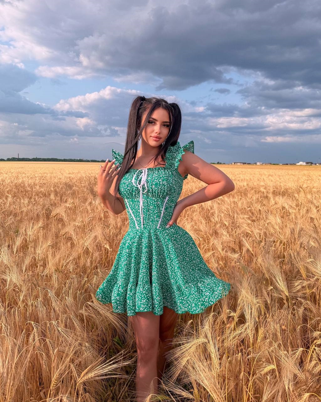 Головна » Магазин » ОДЕЖДА » ПЛАТЬЯ ТУНИКИ САРАФАНЫ » Молодежное Платье- комбинезон с воланом на юбке+рукавами-крылышками зеленый