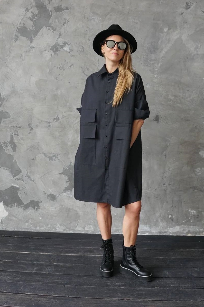 Будьте первым, кто оставил отзыв на “Молодежное платье оверсайз с накладными карманами коттон черный”