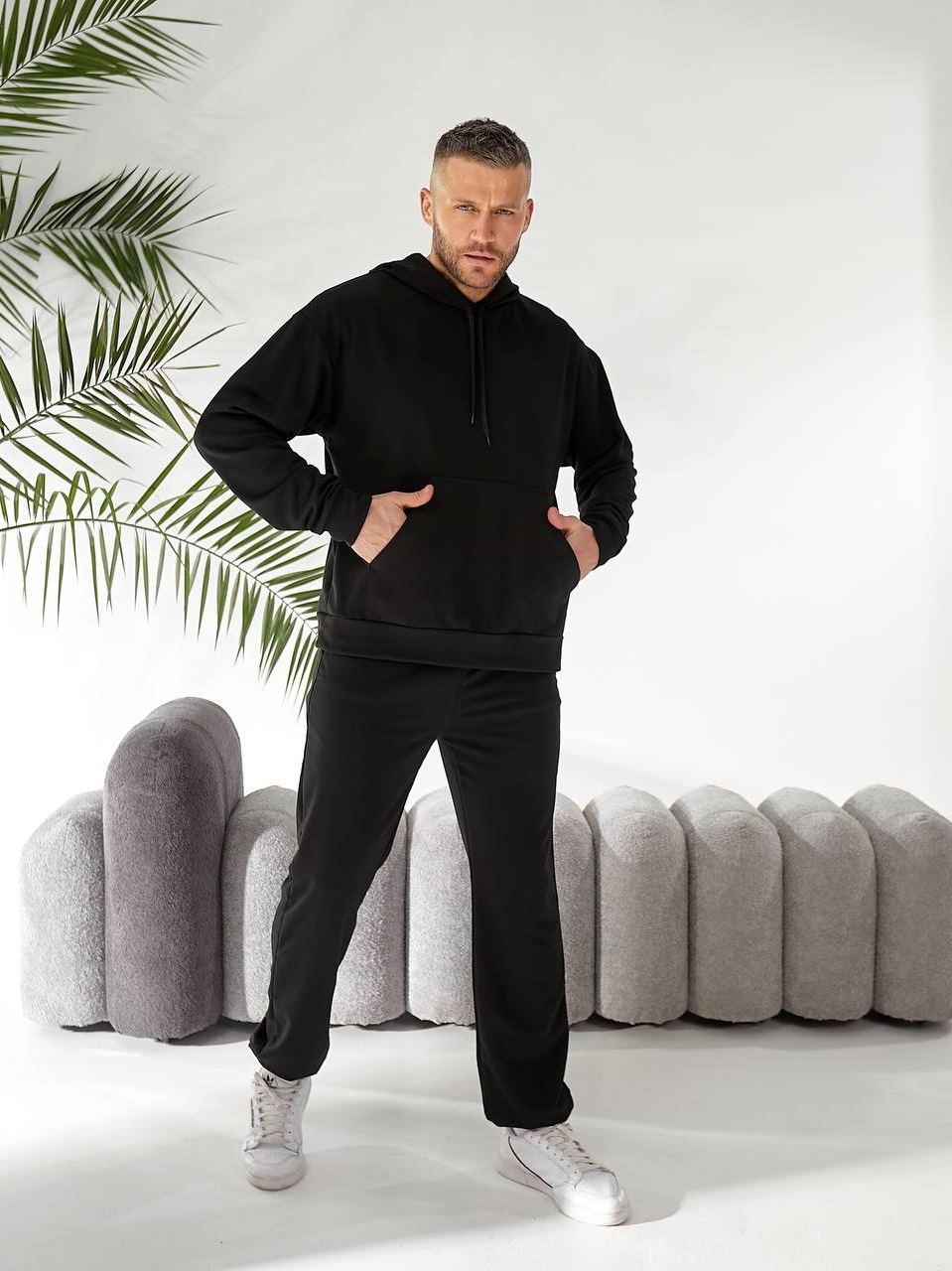 Мужской костюм из двухнитки (кофта с капюшоном+карманом+брюки низ на резинке) черный