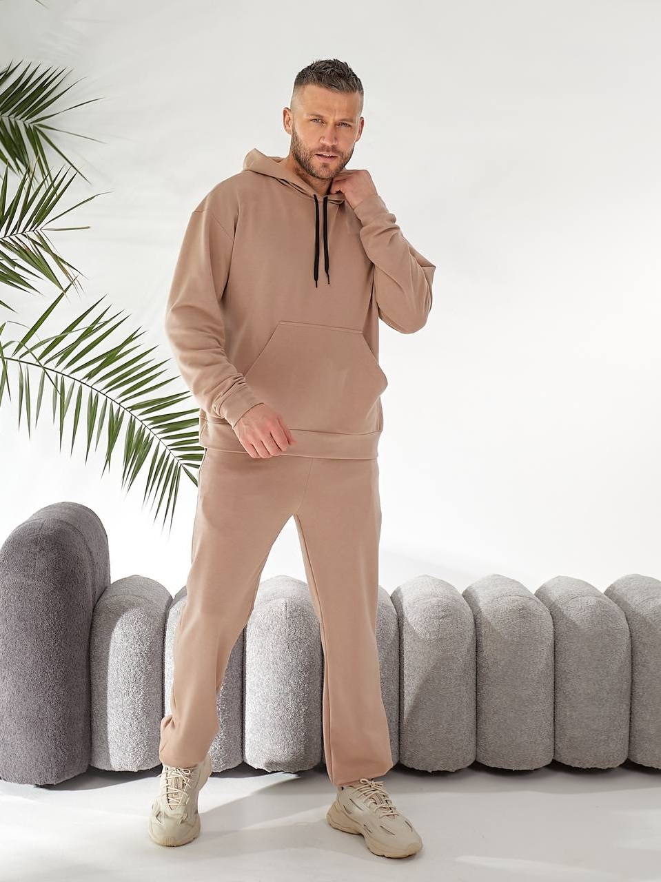 Мужской костюм из двухнитки (кофта с капюшоном+карманом+брюки низ на резинке) бежевый