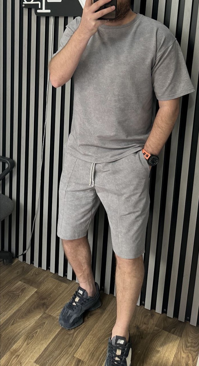Головна » Магазин » ОДЕЖДА » МУЖСКИЕ КОСТЮМЫ » Мужской костюм свободного кроя (футболка+шорты со стрелками) меланж