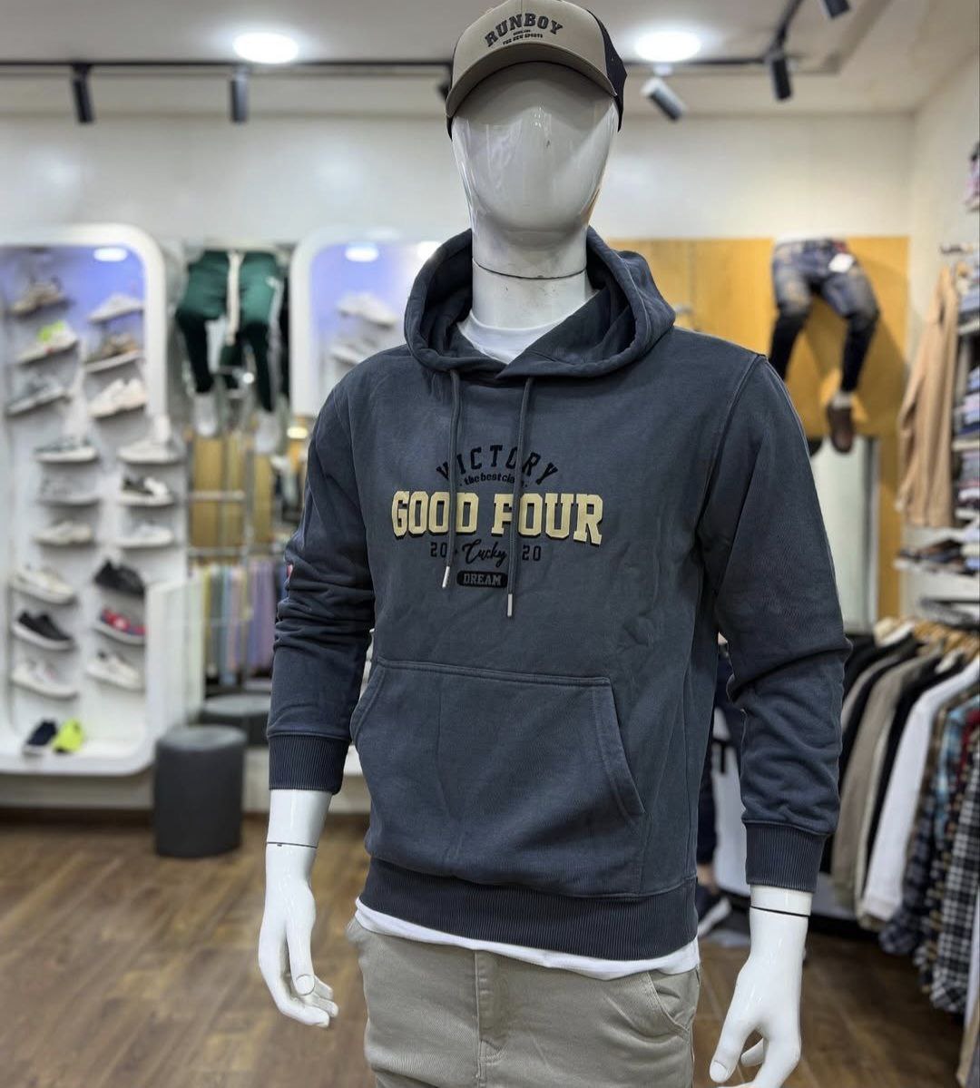 Головна » Магазин » ОДЕЖДА » МУЖСКИЕ СВИТЕРА ТОЛСТОВКИ КОФТЫ ФУТБОЛКИ » Мужской свитшот с капюшоном+карманом кенгуру+накатом графит