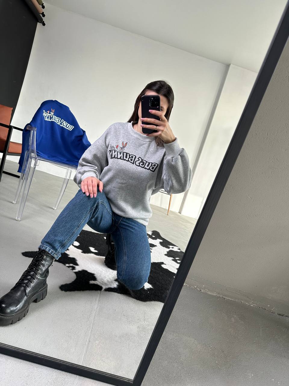 Мягкий и тепленький свитшот с накаткой Bugs Bunny меланж