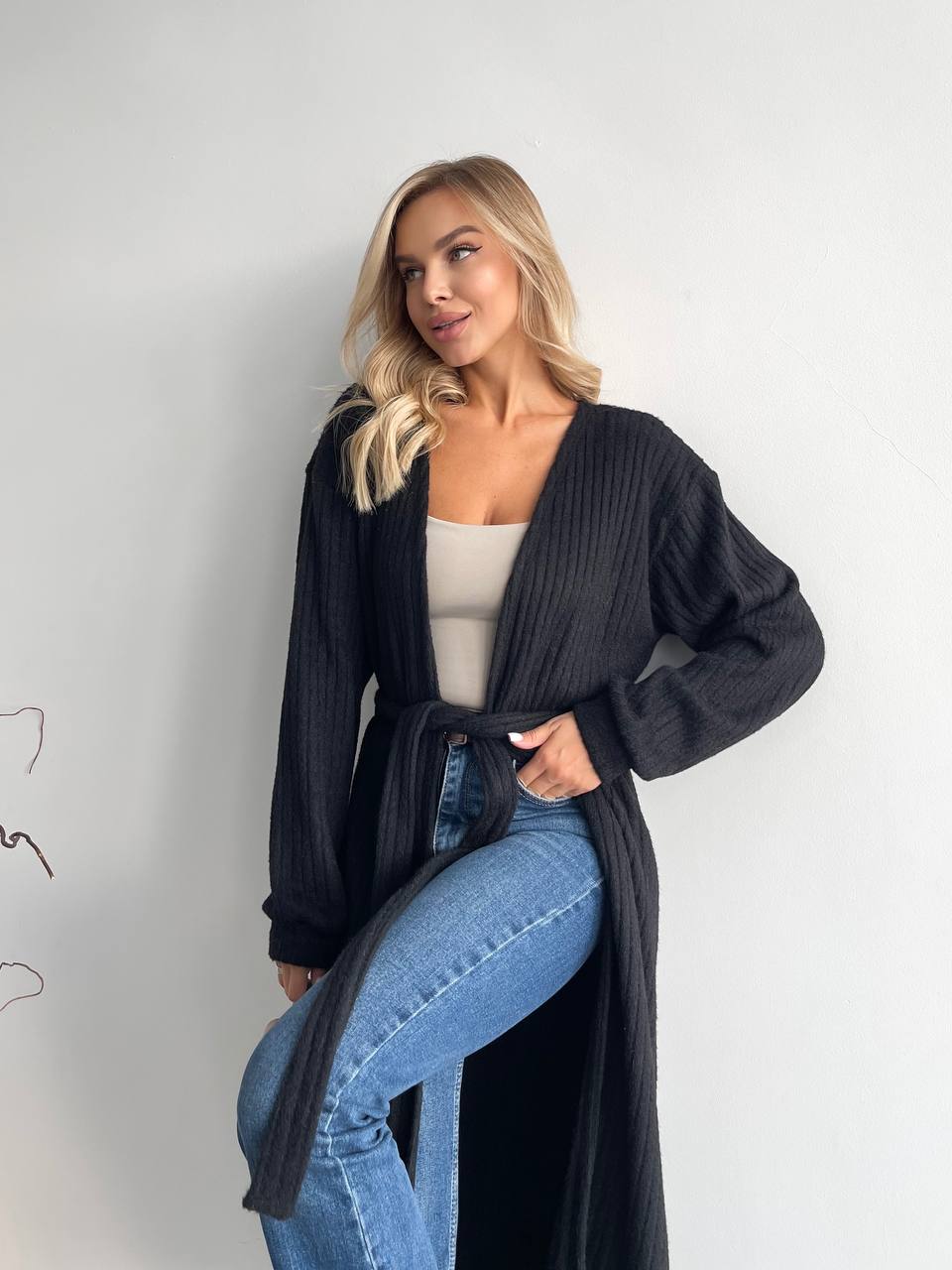 Мягкий кардиган с поясом (альпака рубчик) черный