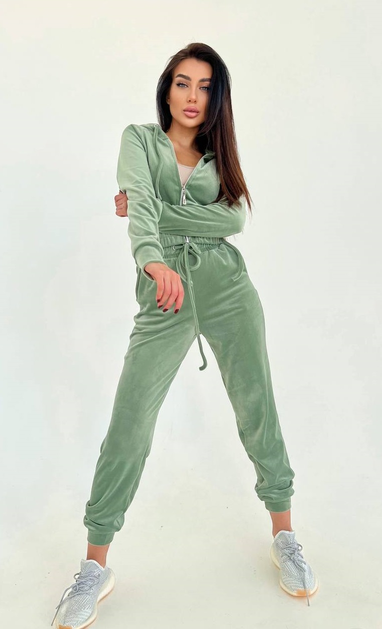 Кофта на молнии, брюки на высокой посадке, с карманами, внизу манжет, удобный и комфортный