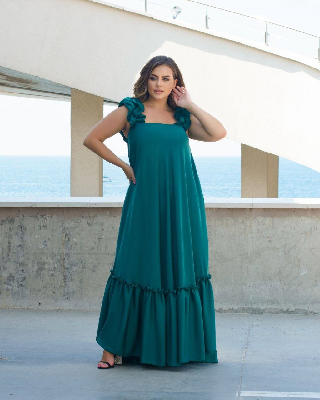 Невероятный длинный сарафан жатый шелк зеленый