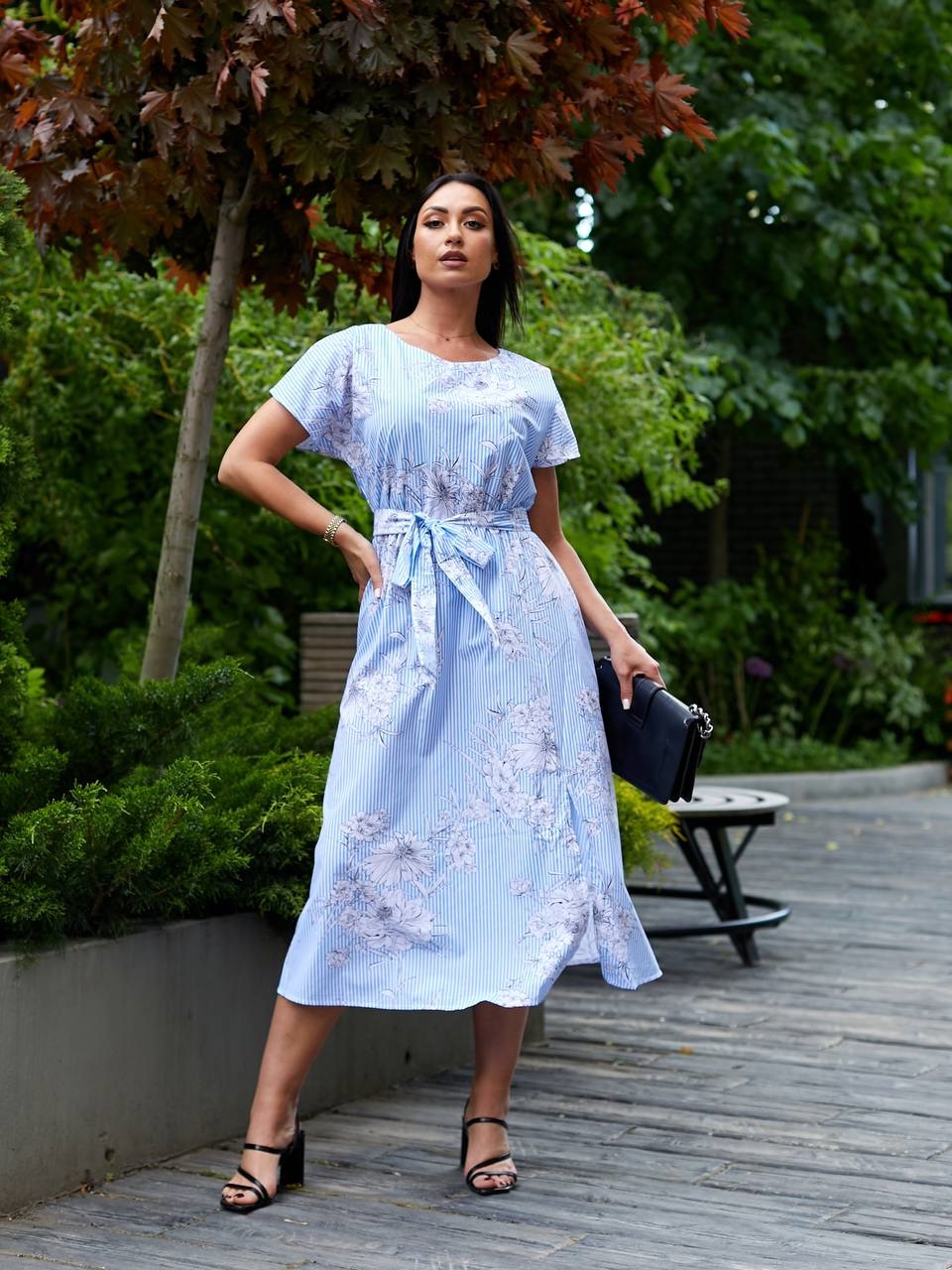 Нежное платье идеальный крой длиной миди коттон голубой с цветами