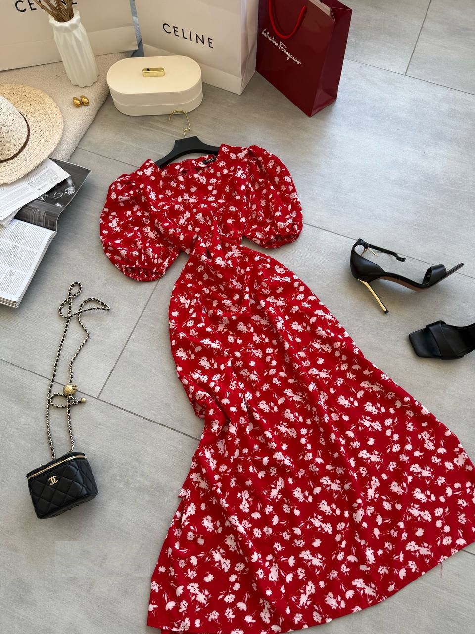Головна » Магазин » ОДЕЖДА » ПЛАТЬЯ ТУНИКИ САРАФАНЫ » Нежное шелковистое платье с пышными рукавчиками принт цветочки красный