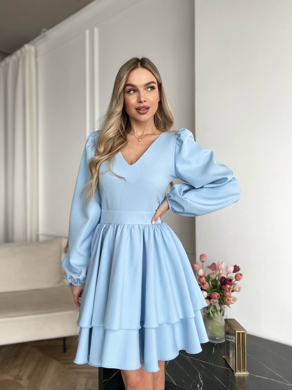 Головна » Магазин » ОДЕЖДА » ПЛАТЬЯ ТУНИКИ САРАФАНЫ » Нежное женское платье с двойной юбкой (костюмная ткань) голубой
