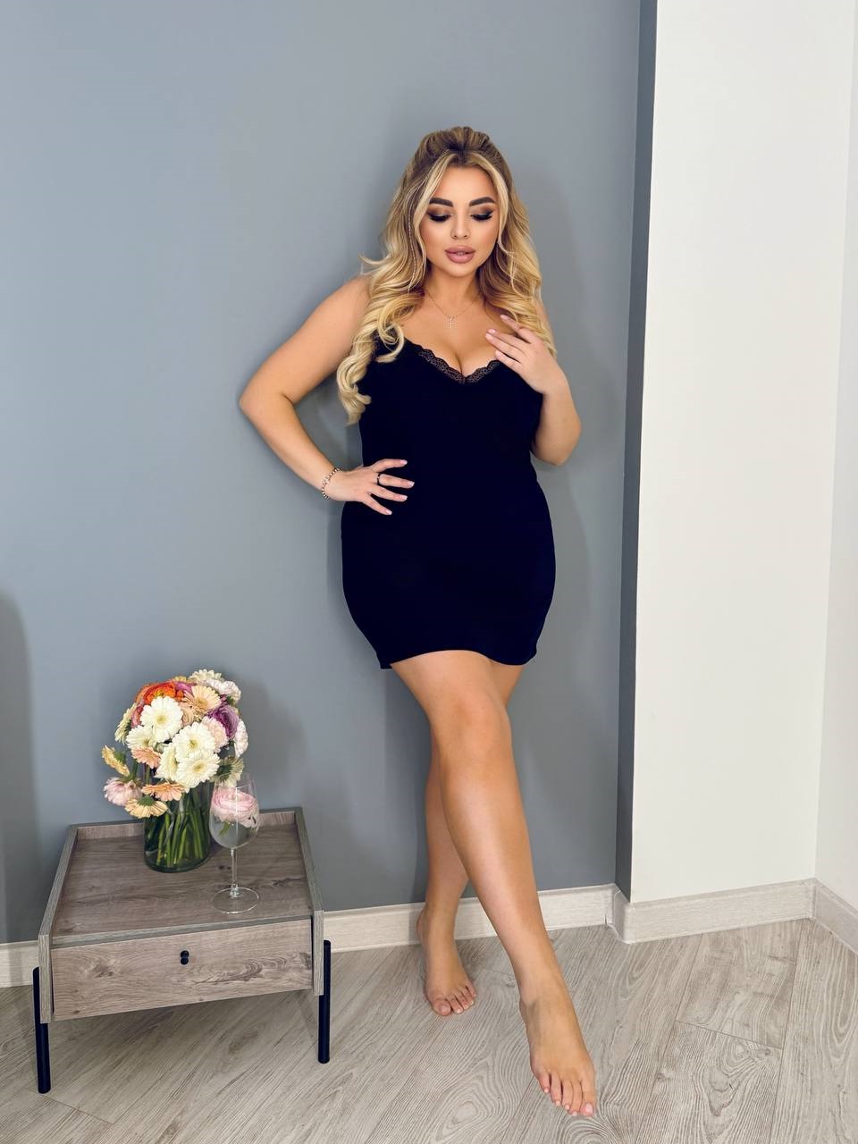 Ночная рубашка длиной мини, украшена кружевом в размере SIZE+ темно-синий