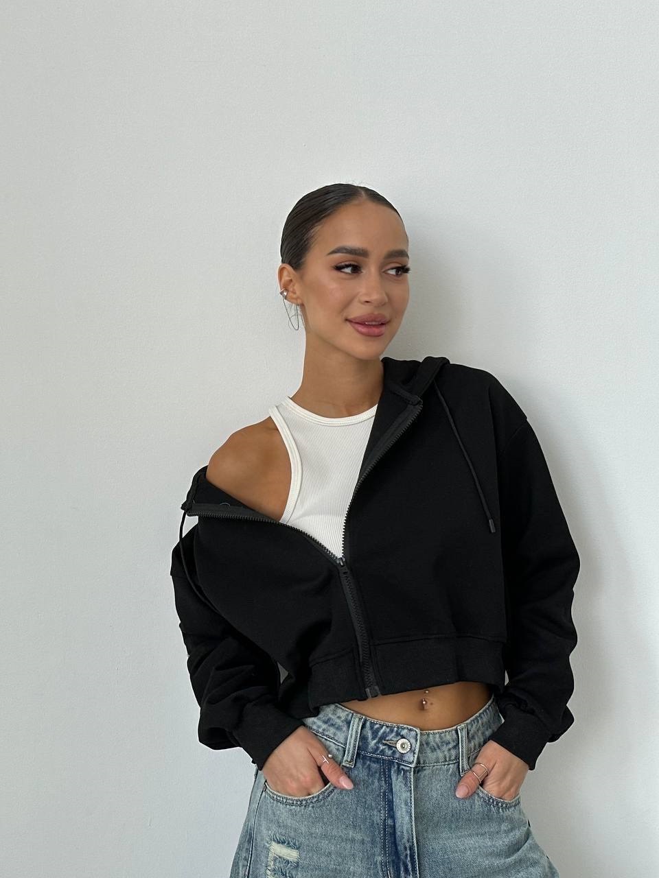 Головна » Магазин » ОДЕЖДА » КОФТЫ ТОЛСТОВКИ ХУДИ СВИТЕРА » Объемный базовый укороченный худи с капюшоном черный