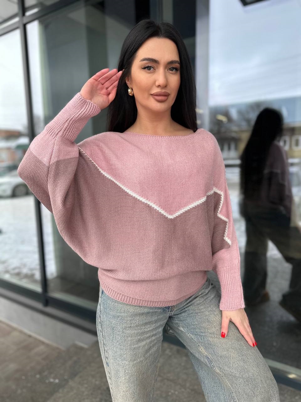 Очень тоненький Весенний свитер пудра с темной пудрой