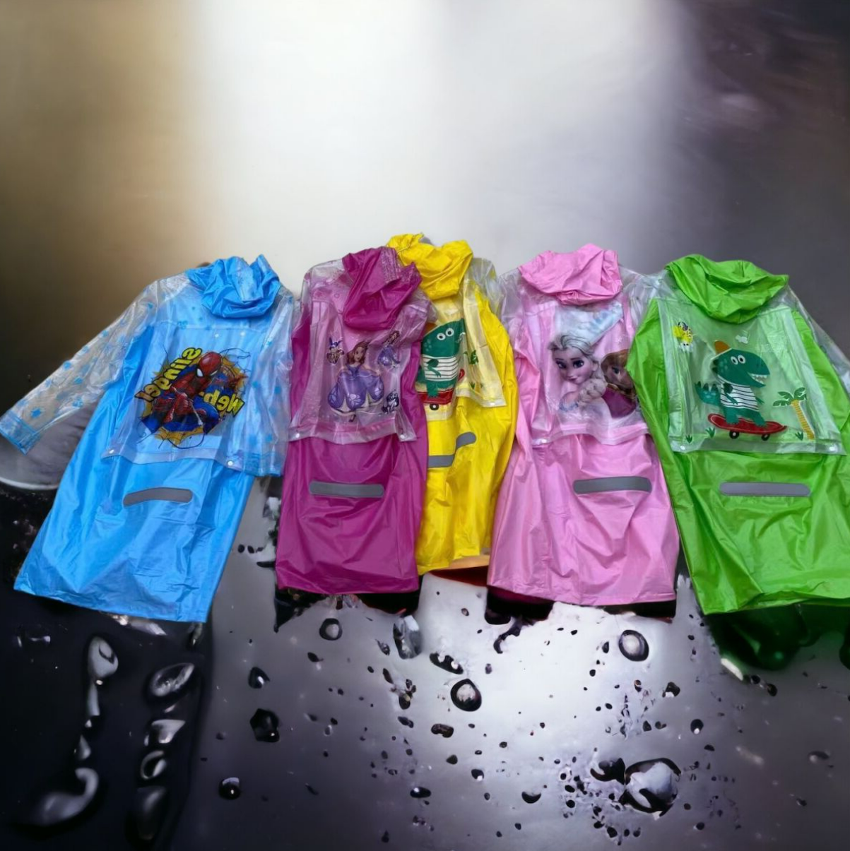 Отличный плащ-дождевик, изготовленный из высокопрочного полиэтилена, защитит вашего ребенка от дождя, ветра, снега, пылевой или песчаной бури. Когда на улице ненастье (дождь и ветер, метель) трудно не смочить одежду. Зонтик спасает лишь частично, а иногда и вовсе не защищает из-за сильного ветра. Но вы можете легко решить эту проблему, защитив ребенка и сохранив его одежду сухой и чистой, купив плащ дождевик на кнопках. Дождевик детский на кнопках – стильный, удобный и влагостойкий. Для детей такие плащи-дождевики просто не заменимая вещь. Родители знают, как иногда бывает сложно оградить ребенка от дождя. Такой детский дождевик на кнопках с ярким и веселым рисунком значительно упростит эту задачу и поднимет настроение ребенку. Он надежно защитит его во время активного отдыха и в условиях, в которых обычный зонтик мало чем полезен. Плащ от дождя оставляет свободу для активных движений, поскольку имеет универсальный размер. Детский плащ-дождевик на кнопках с ярким принтом, застегивается на 4 большие пластиковые кнопки. В тех местах, где установлены кнопки, толщина полиэтилена вдвое больше для увеличения прочности материала и вы можете не переживать, что случайно порвет пленку. С надувным капюшоном. Этот дождевик многократного использования благодаря прочности материала. А благодаря своей цене вы можете при необходимости легко приобрести новый. И это не ударит вашему бюджету. Такой дождевик легко поместиться в сумке или рюкзачке, не займет много места в портфеле или шкафчике, всегда будет под рукой в бардачке машины. Применение: -Для защиты от дождя -Для защиты от ветра -Для защиты от снега -Для защиты от пыли Преимущества: -Высокое качество -Длинный срок службы -Простой уход -Легкий и компактный -Яркий веселый принт с рисунком Дождевик сделан из прочного водонепроницаемого материала EVA. Это современная водостойкая экологически чистая дышащая ткань и без запаха. Материал нетоксичный, качественный, с высоким уровнем прочности. Дождевик плотный, держит форму, не меняется. Изделие бесшовное, смотрится аккуратно и стильно. Одежда из EVA удобна и практична в ношении. Широкий крой универсален и подходит детям, независимо от комплекции и пола. На дождевике есть кнопки-пуговицы, как на обычном плаще. Это обеспечит защиту от падения влаги. Под плащом можно носить рюкзак или сумку, оградив вещи от попадания влаги. Широкие и длинные рукава с манжетами можно подвернуть при необходимости. Плащ быстро сохнет в развернутом состоянии,