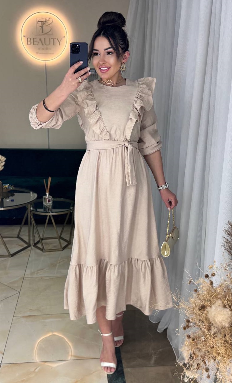 Платье миди с рюшем