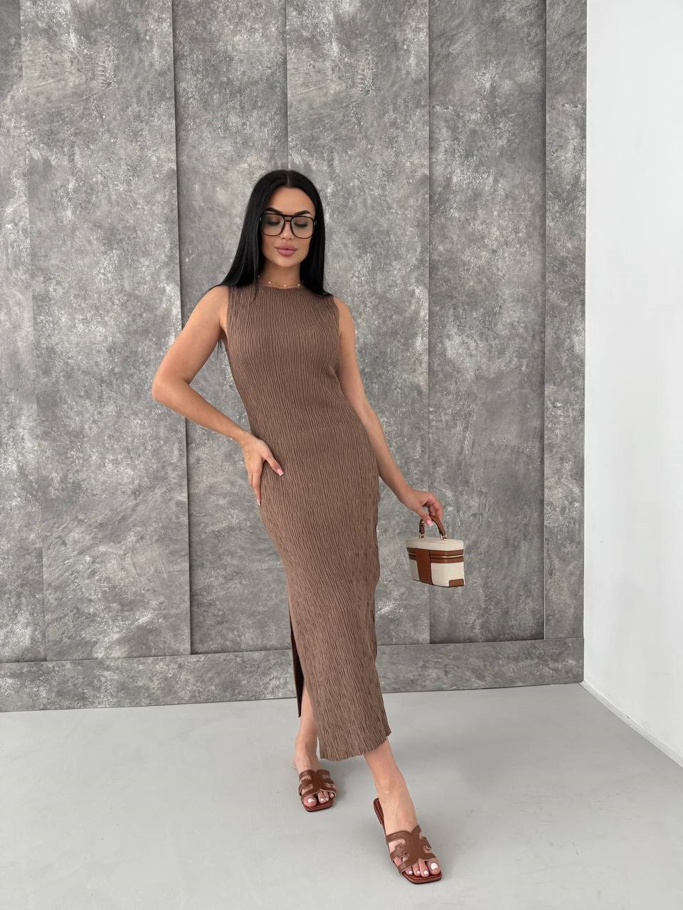 Платье из мягкого трикотажа длиной макси мокко