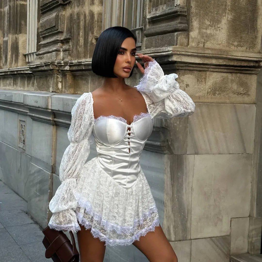 Современная модель с имитацией корсета, с чашками в длине мини.