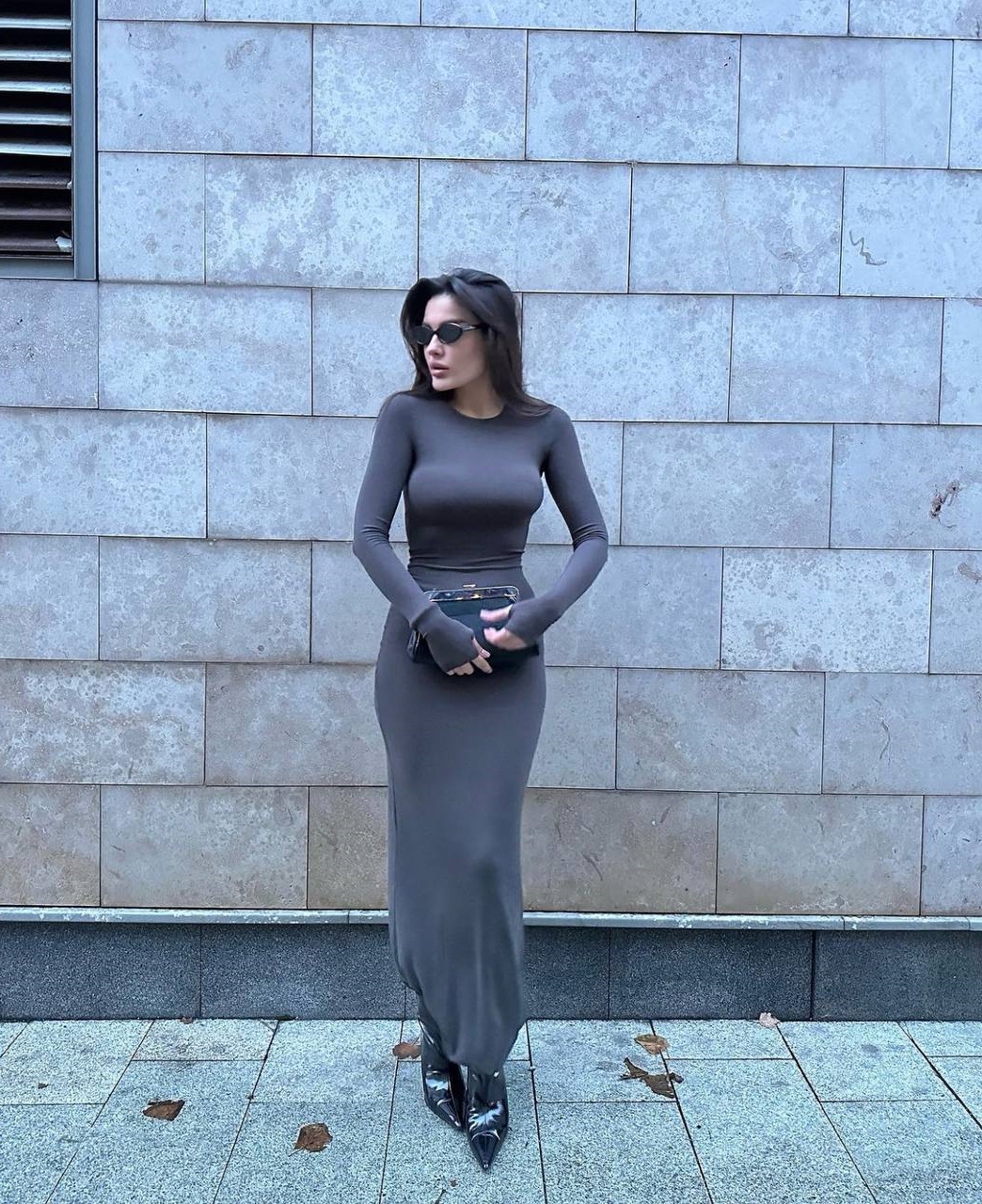 Платье макси в стиле «SK!MS» графит