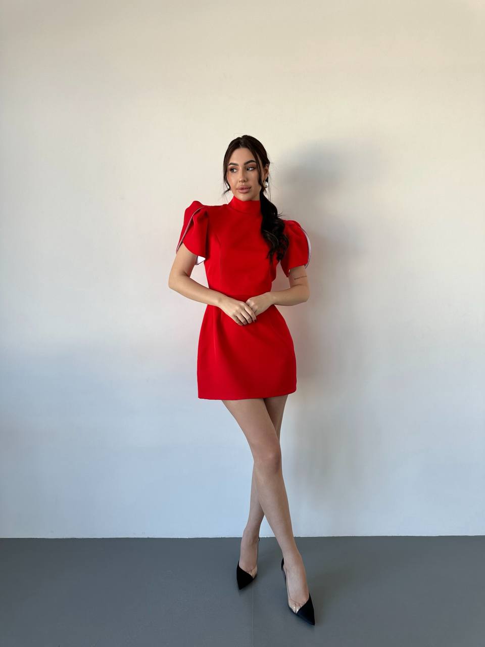 Платье мини с элегантным вырезом на спинке и нежным бантиком красный