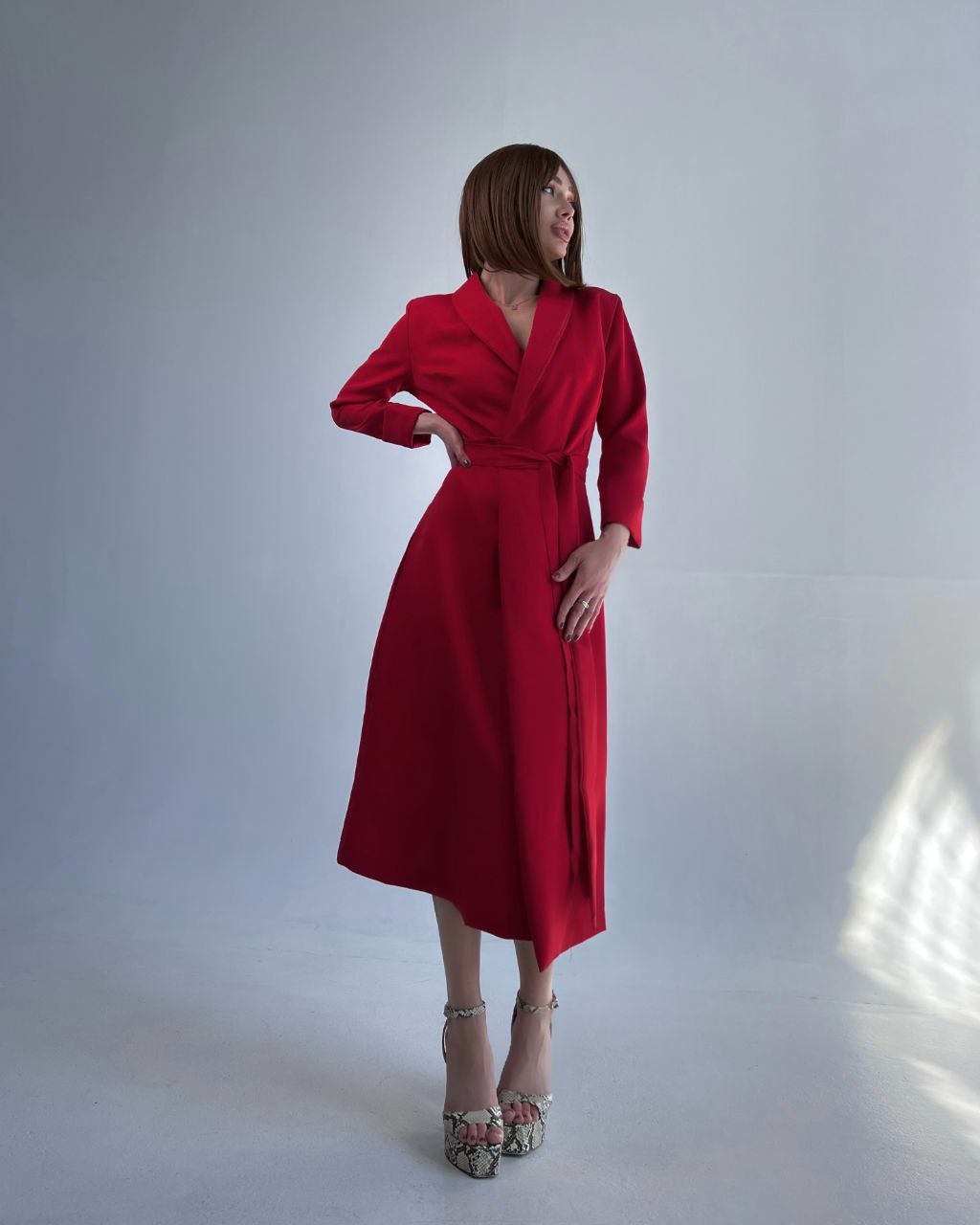 Головна » Магазин » ОДЕЖДА » ПЛАТЬЯ ТУНИКИ САРАФАНЫ » Платье на запах длиной миди костюмка красный