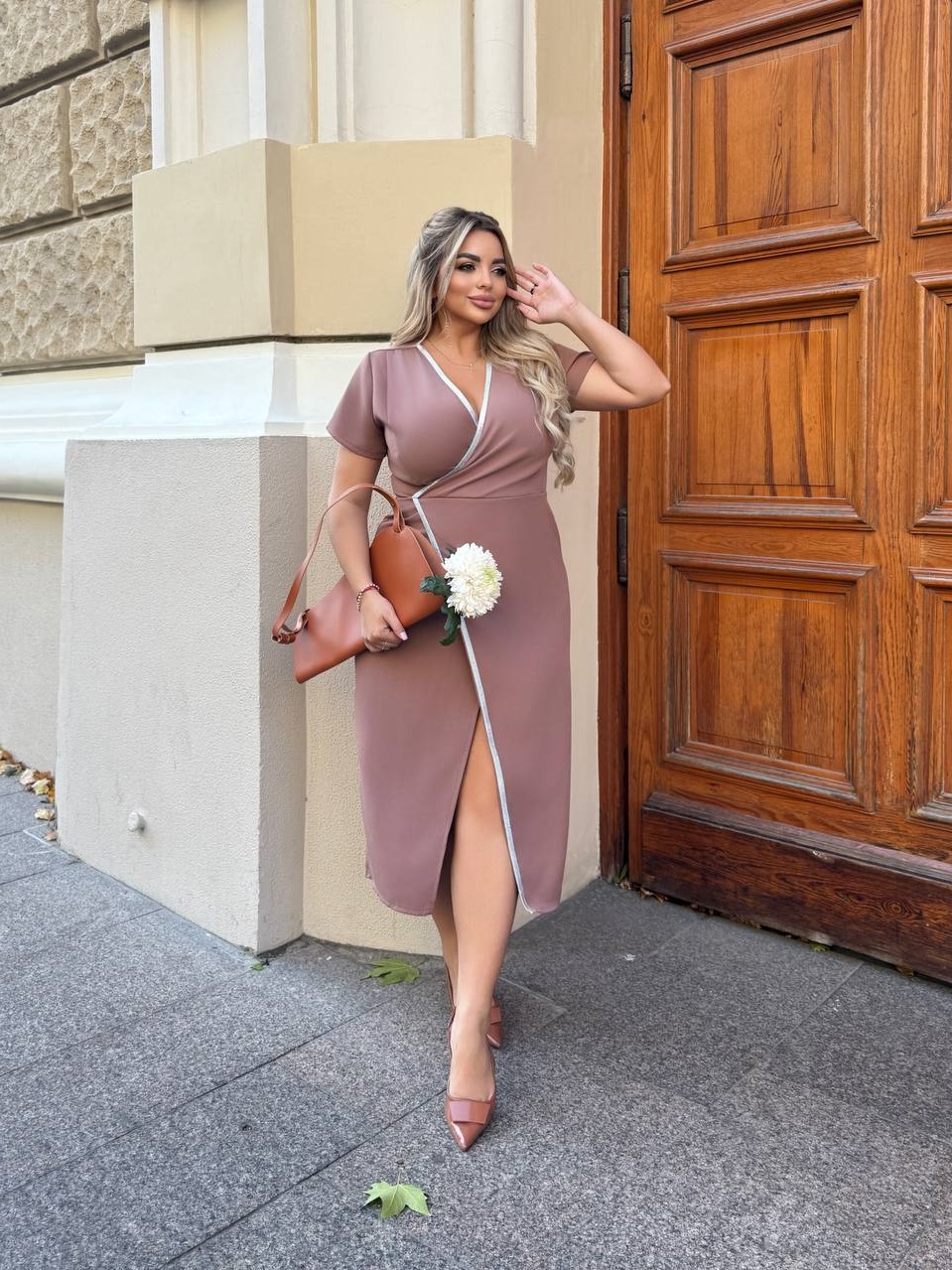 Платье на запах ( ложный),украшенное серебряным кантом капучино