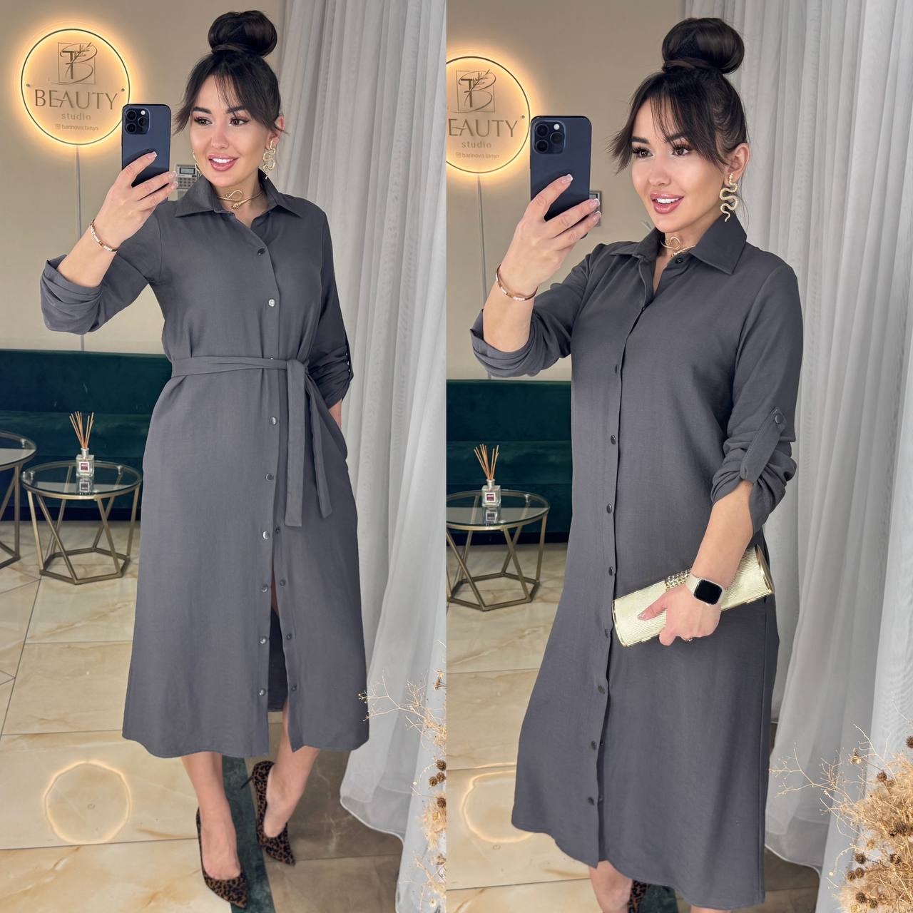 Стильное платье с длинными рукавами и поясом идеально подчеркнет вашу фигуру. Легкий лен обеспечивает комфорт, а элегантный крой придает изысканность.