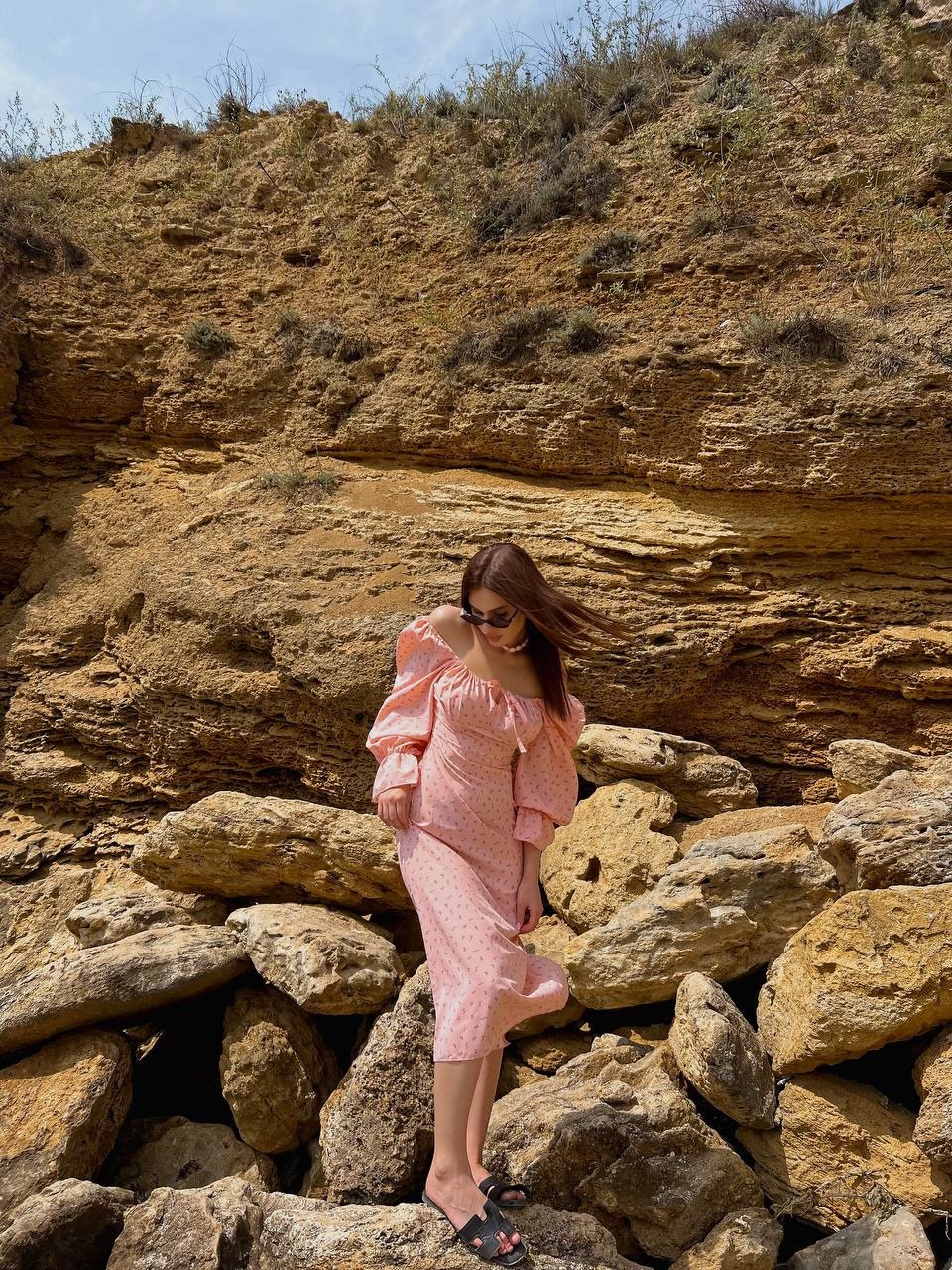 Головна » Магазин » ОДЕЖДА » ПЛАТЬЯ ТУНИКИ САРАФАНЫ » Платье прямого кроя с откоытыми плечами персик