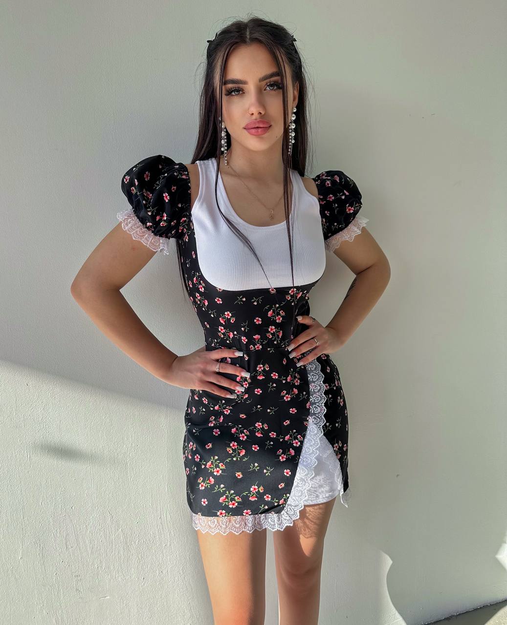 Нежная цветочная новинка. Платье с белыми вставками и кружевом