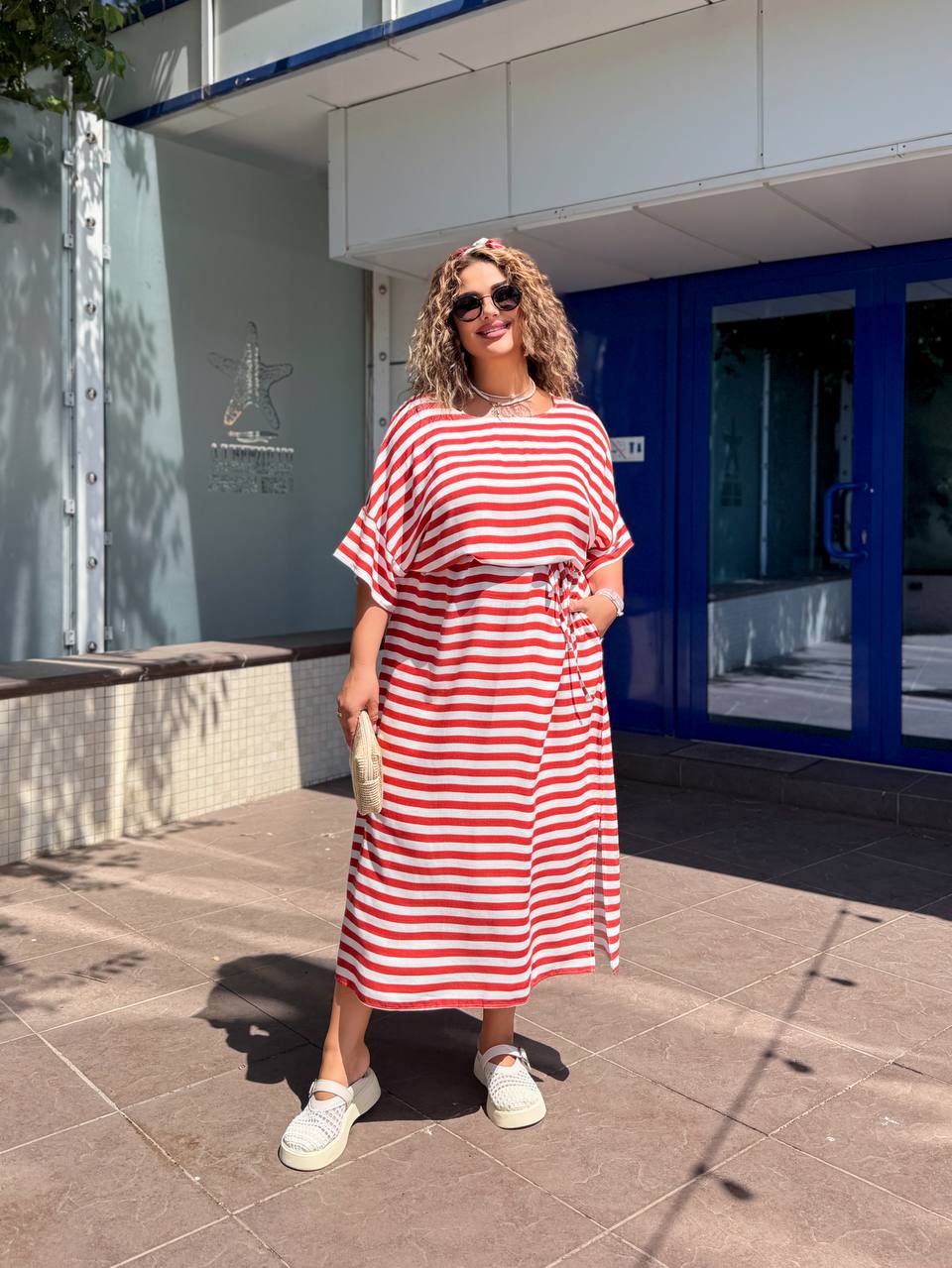 Платье с карманами+по бокам разрезы (штапельный лен) красный