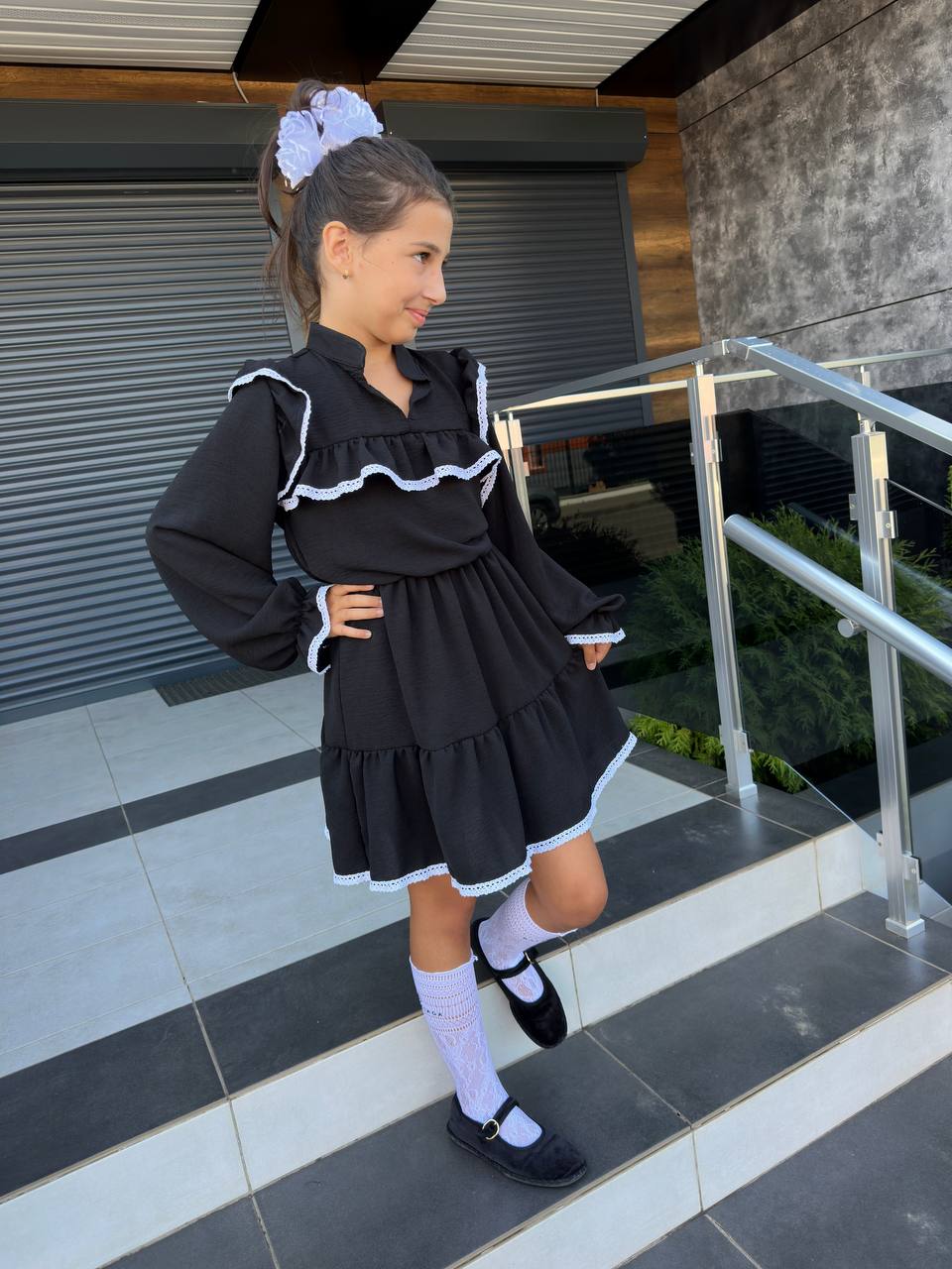 Платье с кружевом на девочку (талия и рукав на резиночках) черный