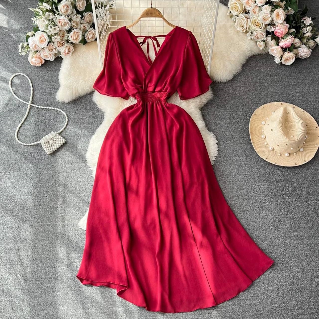 Головна » Магазин » ОДЕЖДА » ПЛАТЬЯ ТУНИКИ САРАФАНЫ » Платье с расклешенной юбкой талия на резинке+воздушными рукавчиками+вырезом по спинке красный
