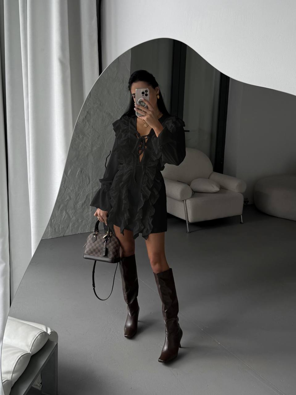 Очень стильное платье, которое идеально садится по фигуре На талии резинка