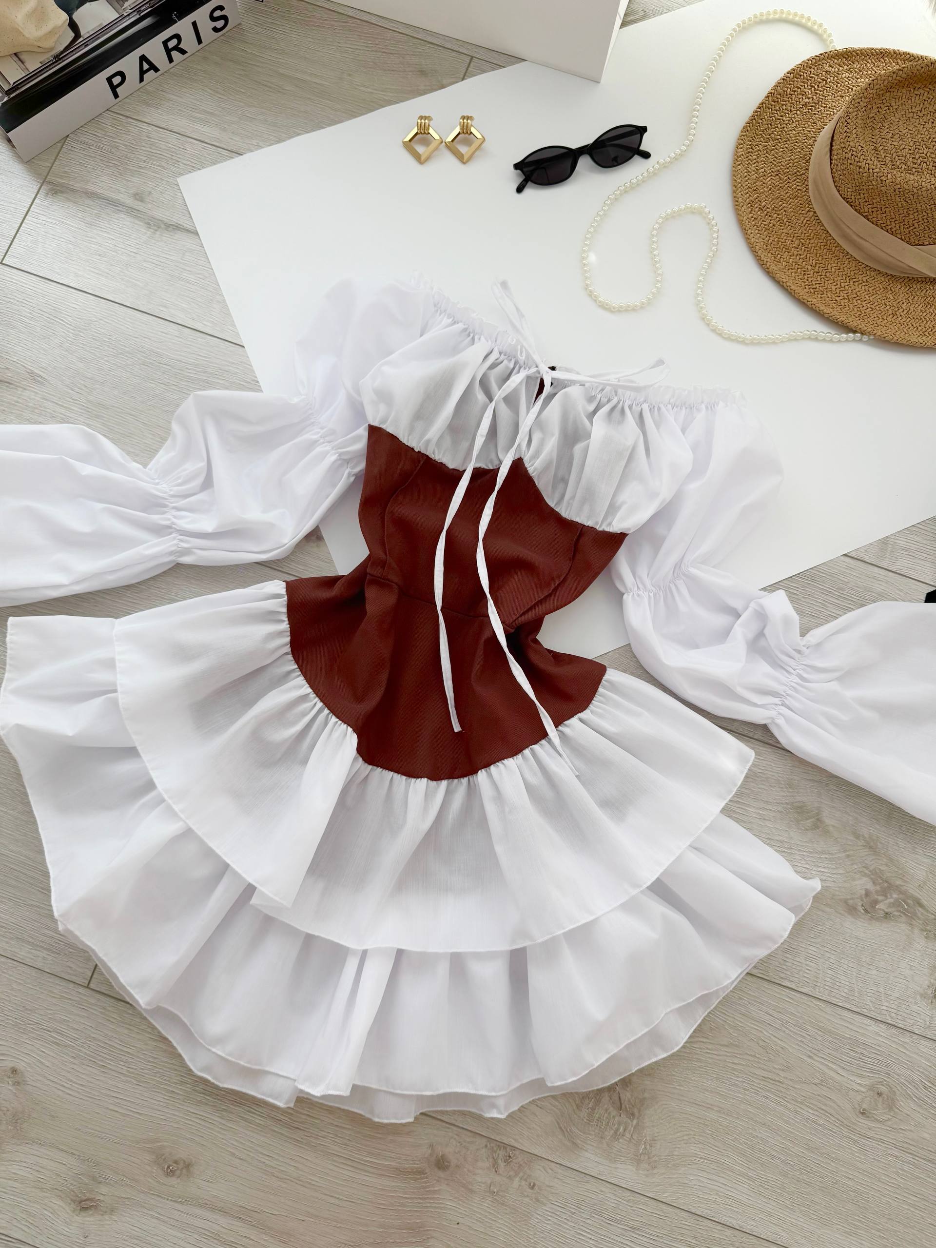 Выполнена из ткани, спинка на потайной молнии и завязках для идеальной посадки по талии.