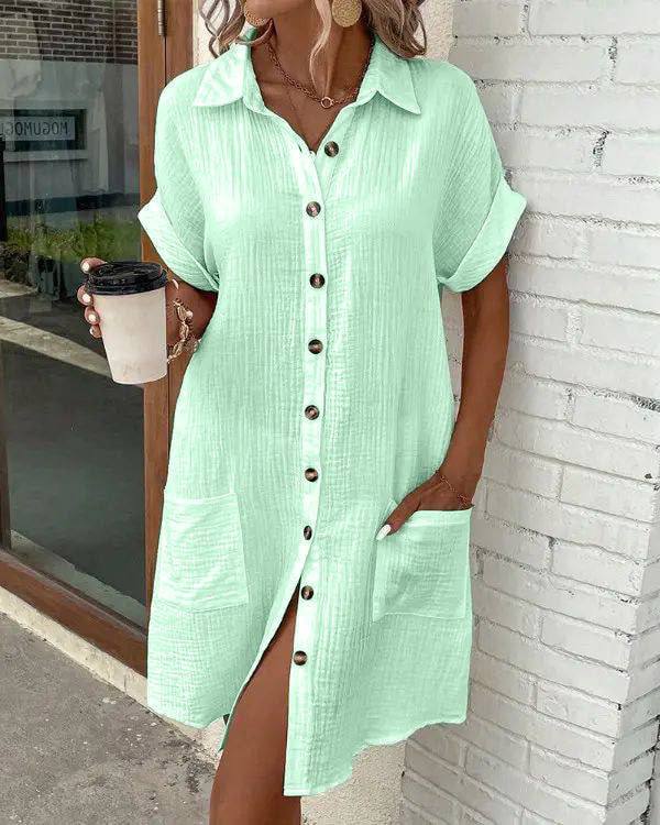 Будьте первым, кто оставил отзыв на “Повседневное нежное женское платье-рубашка из муслина мятный”