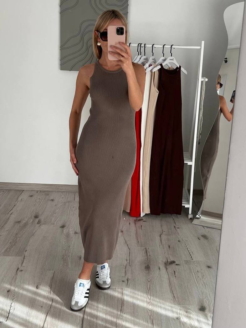 Приталенное макси платье из широкого рубчика.