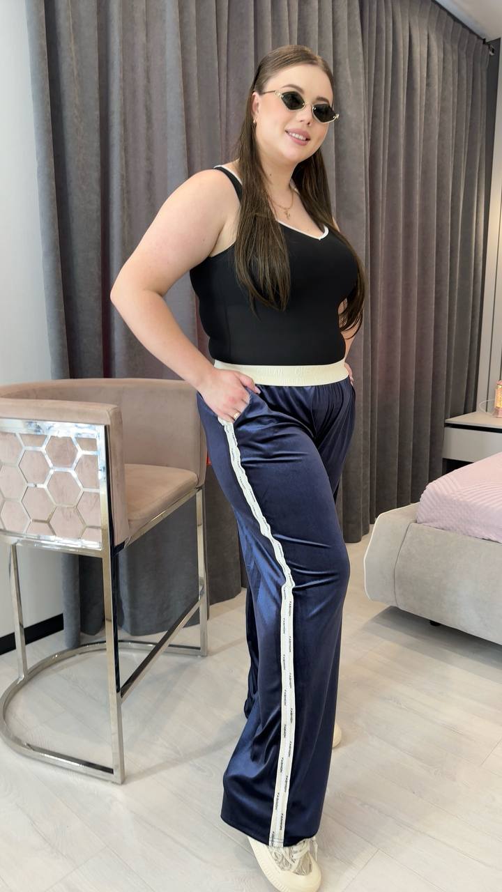 Будьте первым, кто оставил отзыв на “Прогулочные штаны палаццо с лампасами синий”